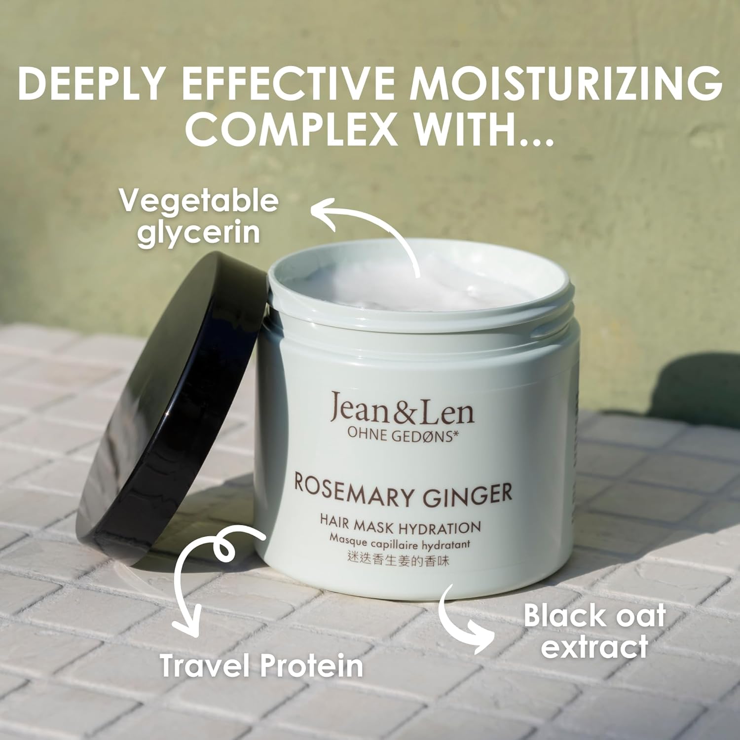 The Jean&Len Hair Mask Rosemary & Ginger is suitable for dry, brittle and dull hair and restores shine and strength – made with love in Germany