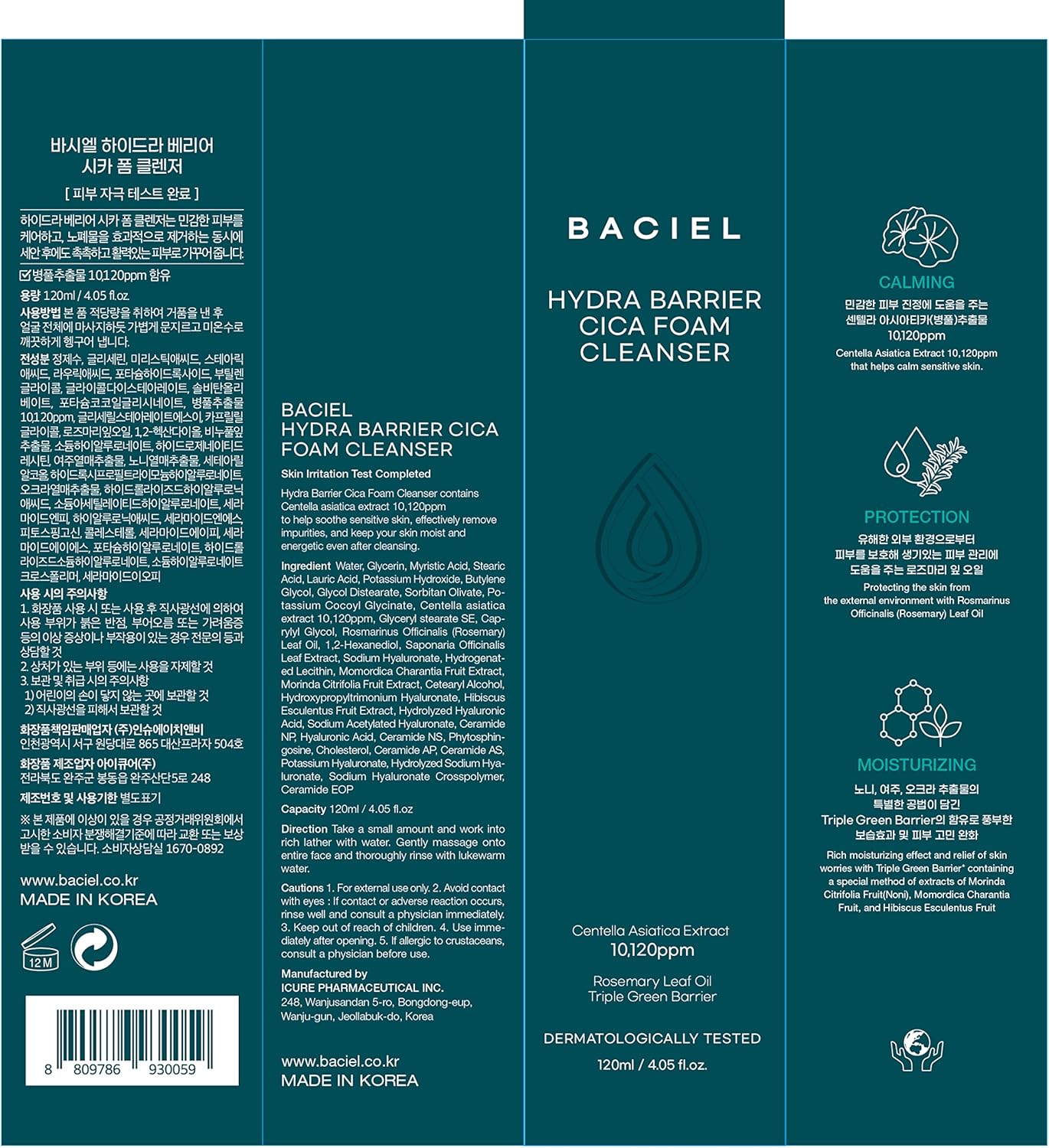 Be the first to review “BACIEL – Hydra Barrier Cica Foam Cleanser 120ml | Korean Skin Care | Facial Cleanser | Sensitive Skin | Pore Care | Ceramide | Hyaluronic Acids”