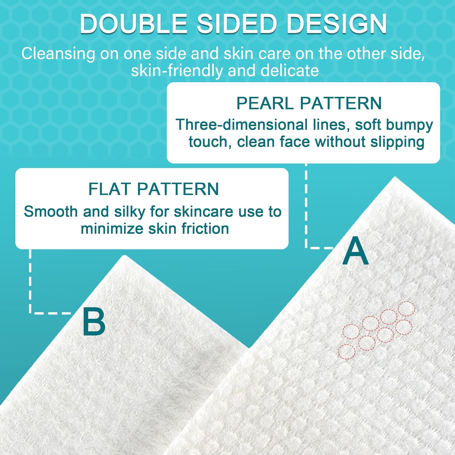 🧼【 Specification 】 Face wipes size is 7.9″ x 7.9″ (20x20CM), enough to cover the whole face. Double-sided design, one side of the concave and convex pearl texture design, increased friction and cleaning power, can easily remove dirt, excess oil and cosmetics residues, make your skin new. The other side has a smooth contact surface, soft and skin-friendly, suitable for sensitive skin. The pop-up design makes it easy to efficiently remove the next tissue, with a large capacity of 100 sheets per p
