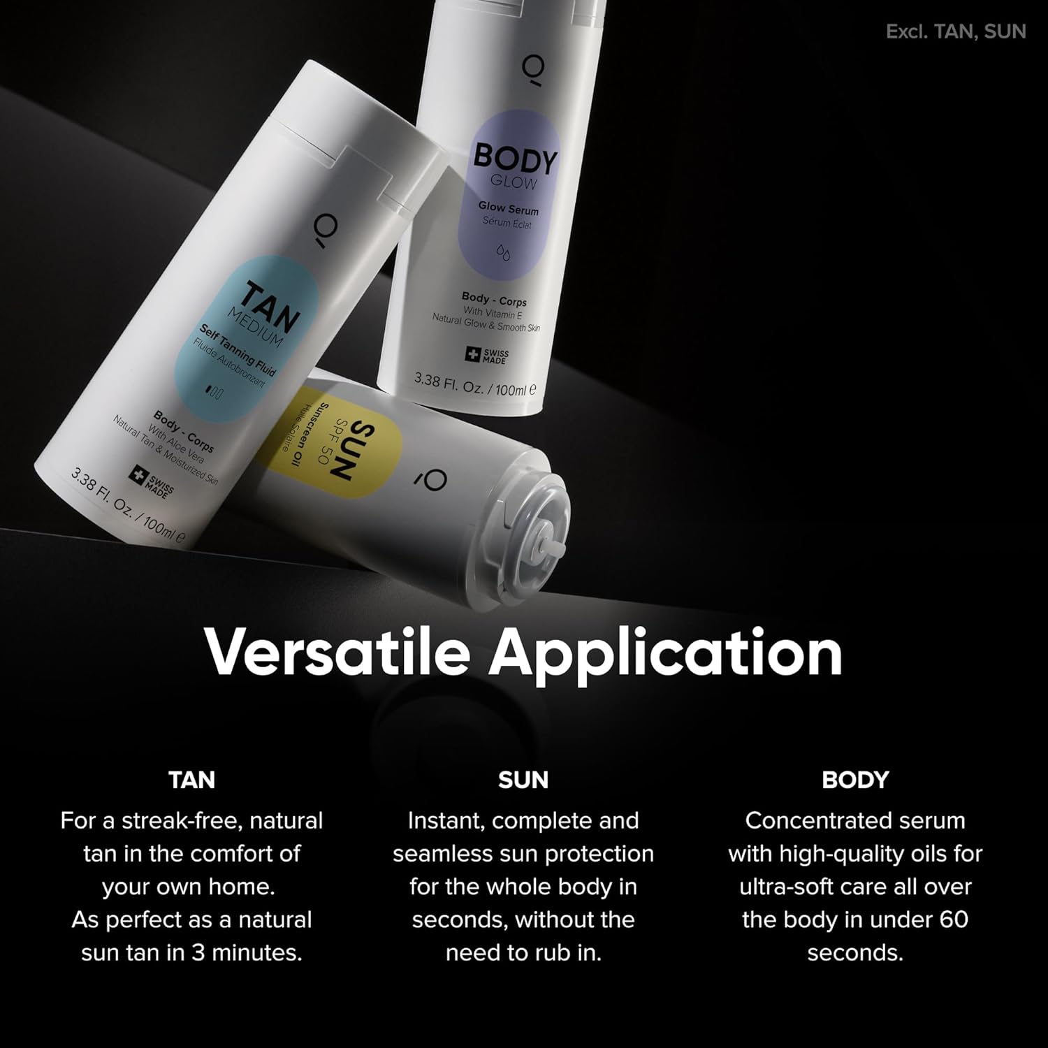 The IONIQ Skincare BODY Serum cartridge gives you soft, smooth and radiantly nourished skin all over your body in just 60 seconds. • With its specially developed formula using macadamia oil, jojoba oil, aloe vera extract and vitamin E, the reactivating BODY Serum gives you silky soft skin. It is absorbed immediately without additional rubbing. In less than a minute, your skin will be visibly smoother thanks to this light and even, nourishing serum. Never has your regular skincare routine been so quick and easy. • Like all IONIQ Skincare products, this premium product is made in Switzerland, dermatologically tested, ocean friendly, free from mineral oil, silicone, parabens and sulphates, and 100% vegan. • The intelligent skincare system from IONIQ Skincare consists of the IONIQ ONE sprayer and the specially developed series of care products. In combination with IONIQ ONE’s patented Magnetic Skin Technology, products such as this body serum offer benefits that make them far superior to conventional skincare products. The rich formulations contain valuable oil-based substances and are almost completely anhydrous. • The premium skincare products are developed by scientists in Switzerland and offer the perfect complement for the unique spray technology. • This cartridge contains 100 ml of body lotion and can only be used with the IONIQ ONE sprayer.