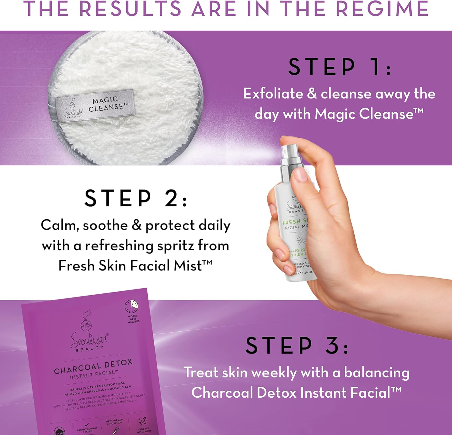 The Seoulista Charcoal Detox Instant Facial is infused with a detoxifying duo of charcoal and volcanic ash, designed to help purify, cleanse and refine congested and imbalanced complexions.
