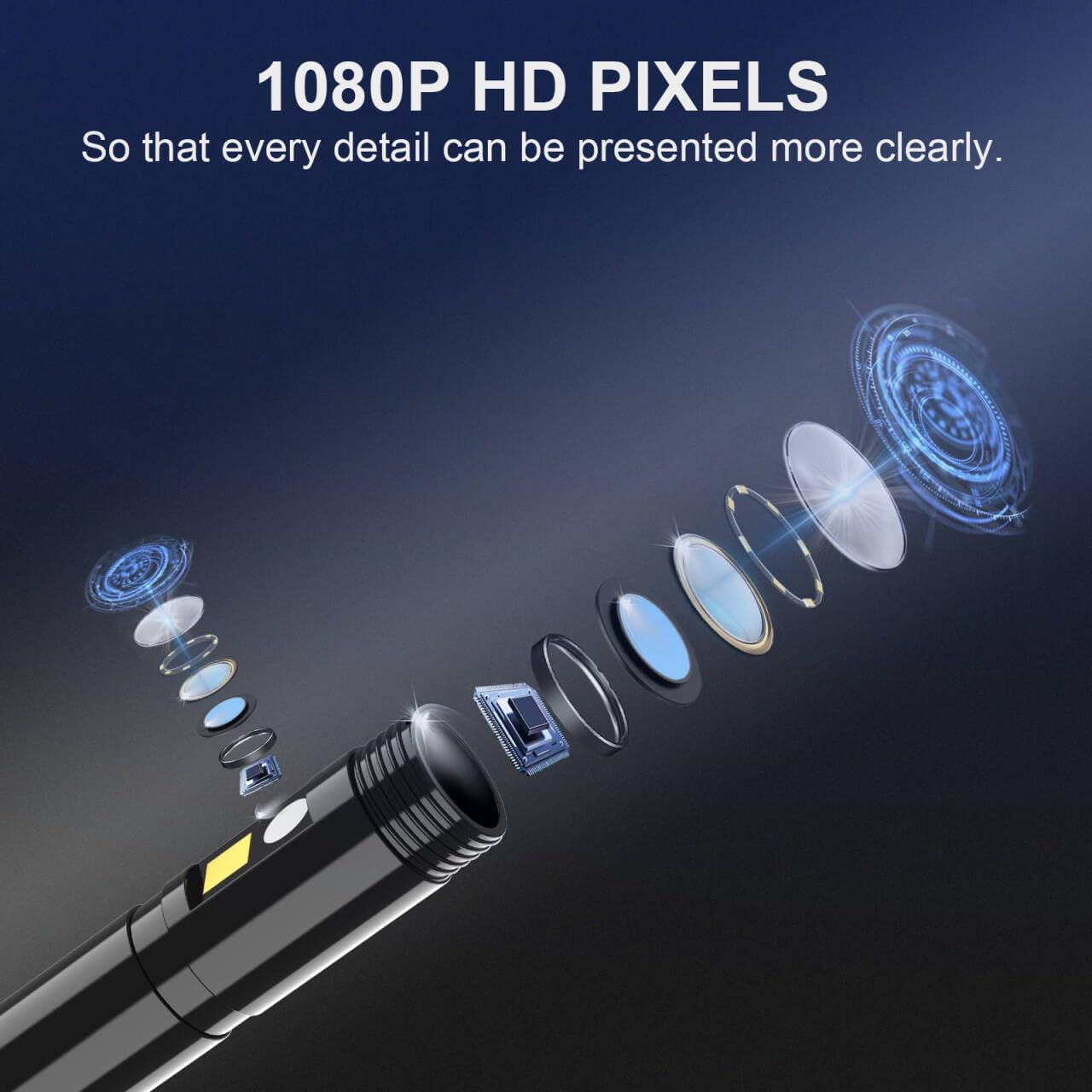 【 Dual-Lens Technology】: Featuring Dual-Lens design for switch angles without hassle, the endoscope camera lets you toggle between front-view and side-view perspectives without installing extra mirrors. Capture both straight-ahead and hard-to-reach angles in one device—ideal for tight spaces like pipes, walls, or engine compartments. The dual lenses work in tandem to eliminate blind spots and maximize inspection efficiency.