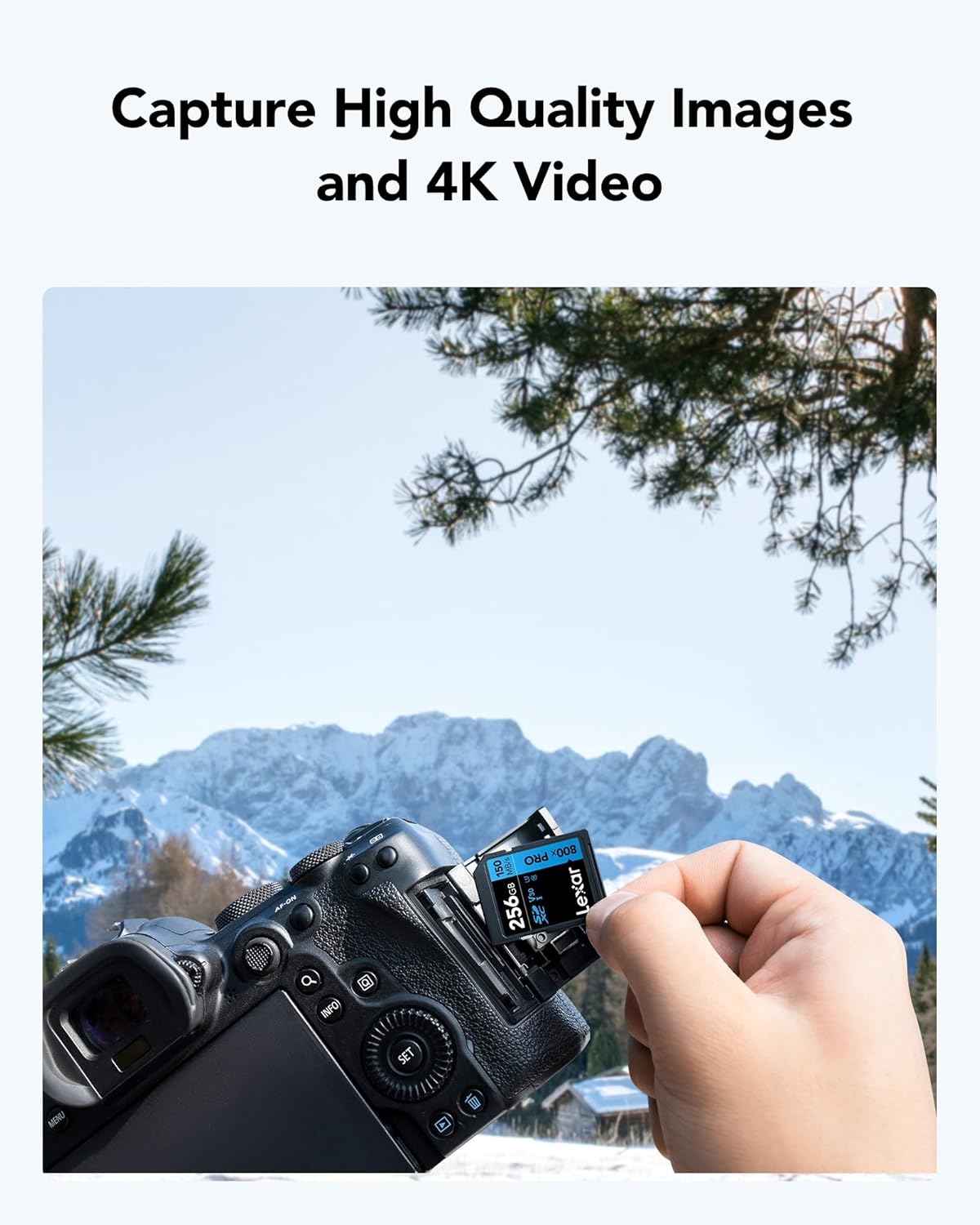 Lexar 800x PRO SDXC card supports capturing high-quality images and stunning 4K UHD video.