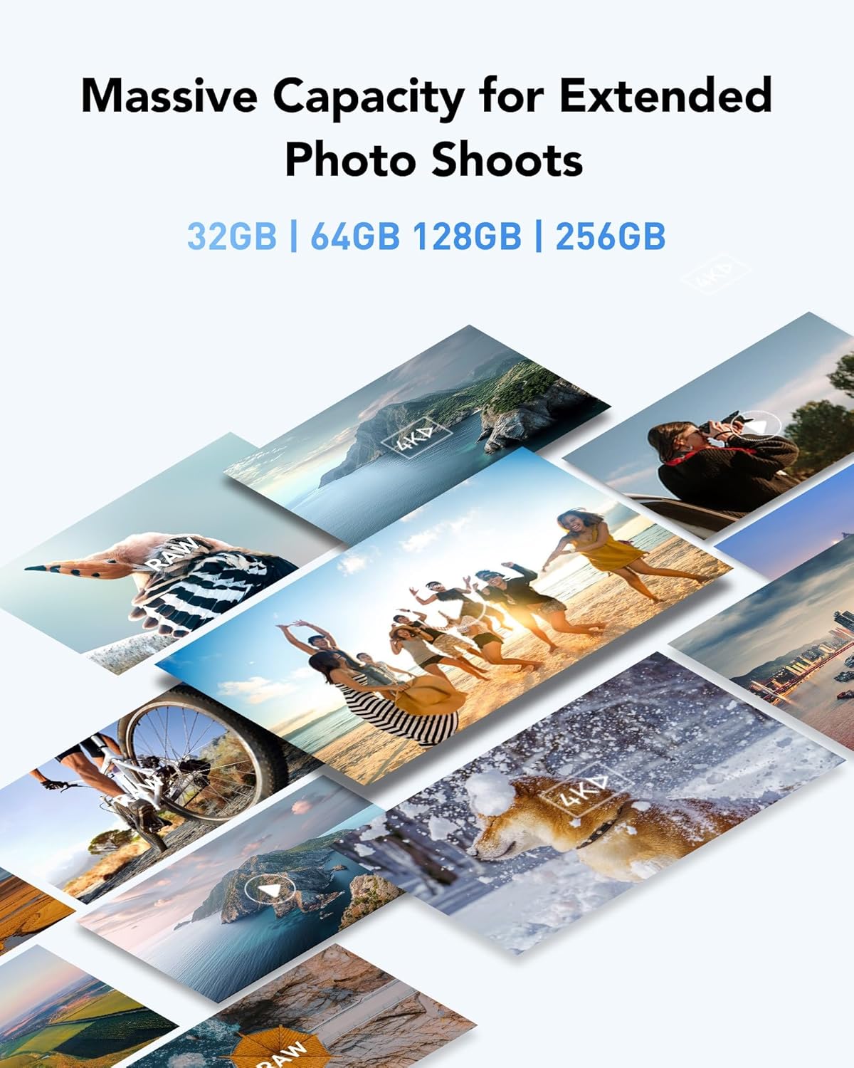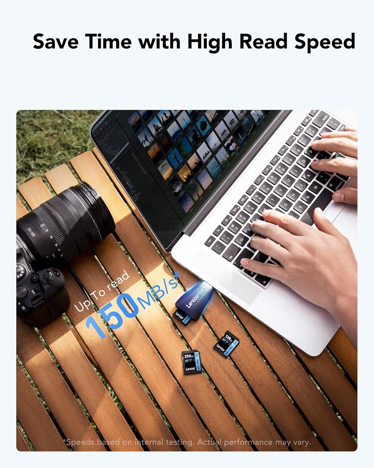 Supporting U3, V30, Class 10, Lexar 800x PRO SD facitilates sharing your images faster with higher transfer speeds of up to 150MB/s.