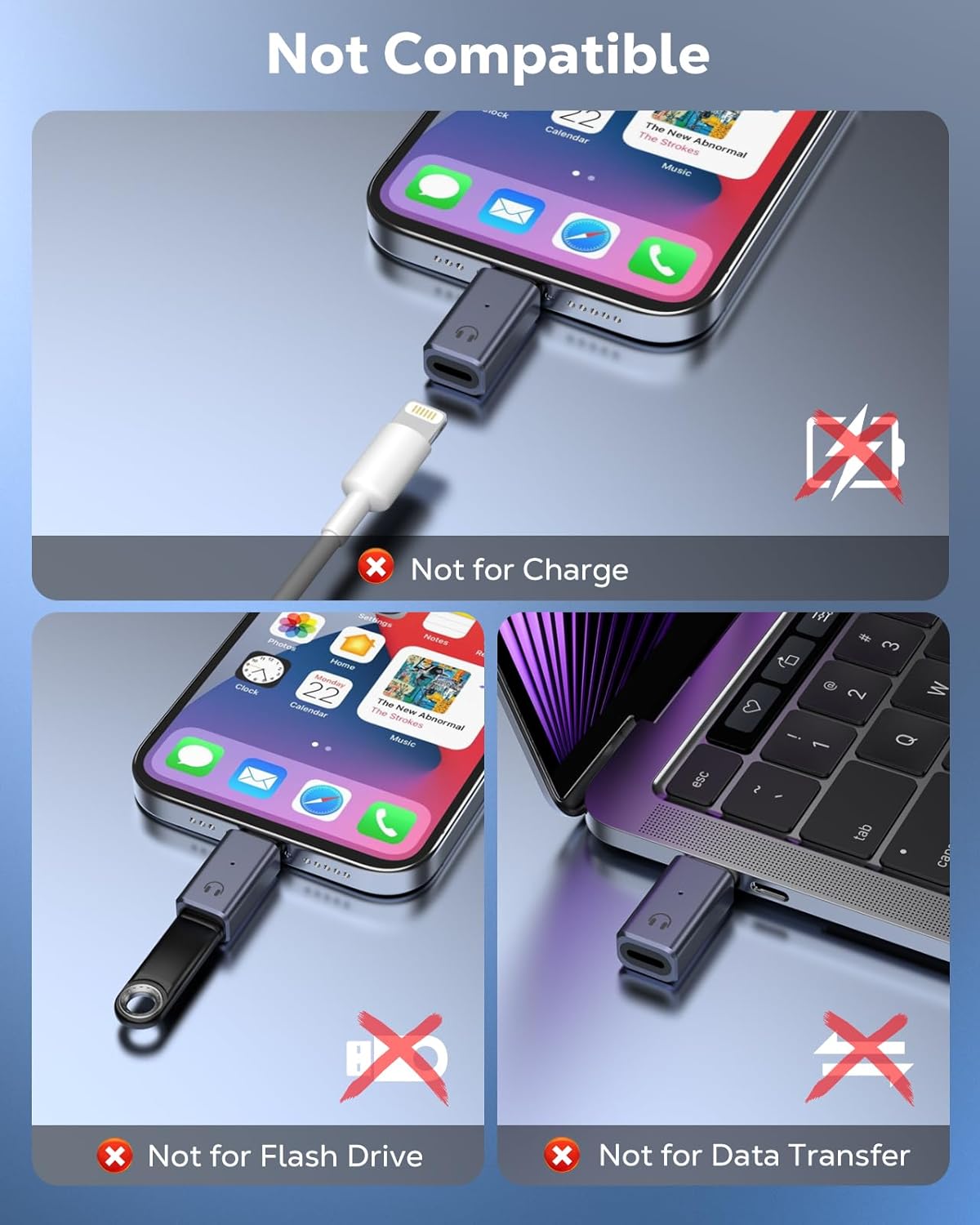 𝐊𝐢𝐧𝐝𝐥𝐲 𝐍𝐨𝐭𝐞 𝐁𝐞𝐟𝐨𝐫𝐞 𝐏𝐮𝐫𝐜𝐡𝐚𝐬𝐞: 𝐓𝐡𝐢𝐬 𝐚𝐝𝐚𝐩𝐭𝐞𝐫 𝐢𝐬 𝐧𝐨𝐭 𝐜𝐨𝐦𝐩𝐚𝐭𝐢𝐛𝐥𝐞 𝐰𝐢𝐭𝐡 𝐥𝐚𝐯𝐚𝐥𝐢𝐞𝐫 𝐦𝐢𝐜𝐫𝐨𝐩𝐡𝐨𝐧𝐞𝐬, 𝐞𝐱𝐭𝐞𝐫𝐧𝐚𝐥 𝐬𝐩𝐞𝐚𝐤𝐞𝐫𝐬, 𝐬𝐭𝐞𝐫𝐞𝐨𝐬, 𝐰𝐢𝐫𝐞𝐝 𝐦𝐢𝐜𝐫𝐨𝐩𝐡𝐨𝐧𝐞𝐬, 𝐚𝐧𝐝 𝐒𝐞𝐧𝐧𝐡𝐞𝐢𝐬𝐞𝐫 𝐡𝐞𝐚𝐝𝐩𝐡𝐨𝐧𝐞𝐬. We don’t recommend using it with too thick phone cases, it may affect the connection stability.
