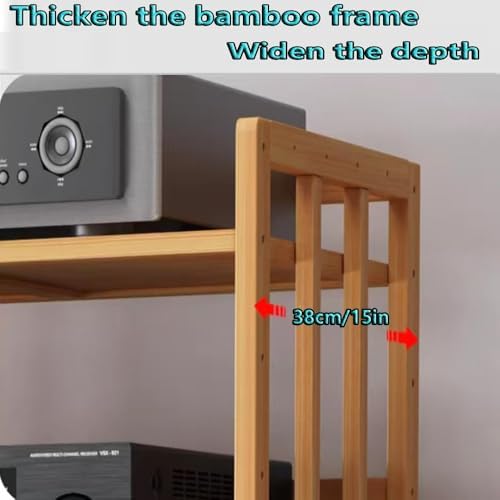 This multifunctional storage shelf is designed to optimize your organization needs, offering ample space with its multi-layer dividers. Perfect for arranging audio equipment, game consoles, AV components, and collections like CDs and DVDs, this shelf is a must-have for any home entertainment setup, office space, game room, or recording studio. Its versatility ensures that all your AV components are conveniently accessible, significantly enhancing your viewing or gaming experience. Crafted from a durable blend of bamboo and wood, this shelf stands out with its classic brown wood finish, making it a stylish addition to any decor. Available in four sizes—50x38x53cm, 50x38x88cm, 50x38x123cm, and 50x38x158cm—this storage solution meets diverse storage needs, ensuring you find the perfect fit for your environment. Please note that minor size variations (1-3cm) may occur due to manual measurement. While product images are intended to accurately represent the item, color variations may occur due to different lighting, angles, and display settings. Trust that the actual product will exceed your expectations for both quality and style, making it an excellent choice for your storage needs.