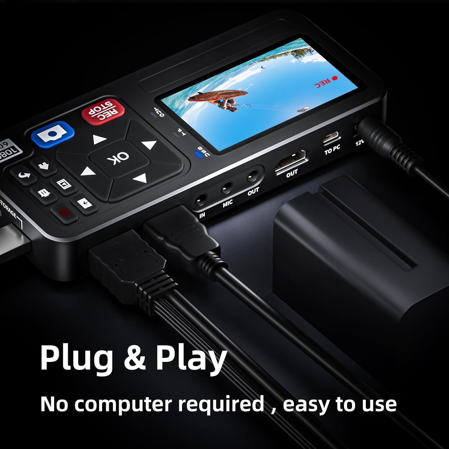 【Innovative Product with Advanced Features】- The URayCoder recording box supports external battery power, making it ideal for outdoor use or when an electrical outlet is unavailable. It’s compatible with NP-F550, NP-F750, NP-F970, and other battery models (available on Amazon or at your local store). Its compact size and independent battery power ensure uninterrupted recording in any environment.