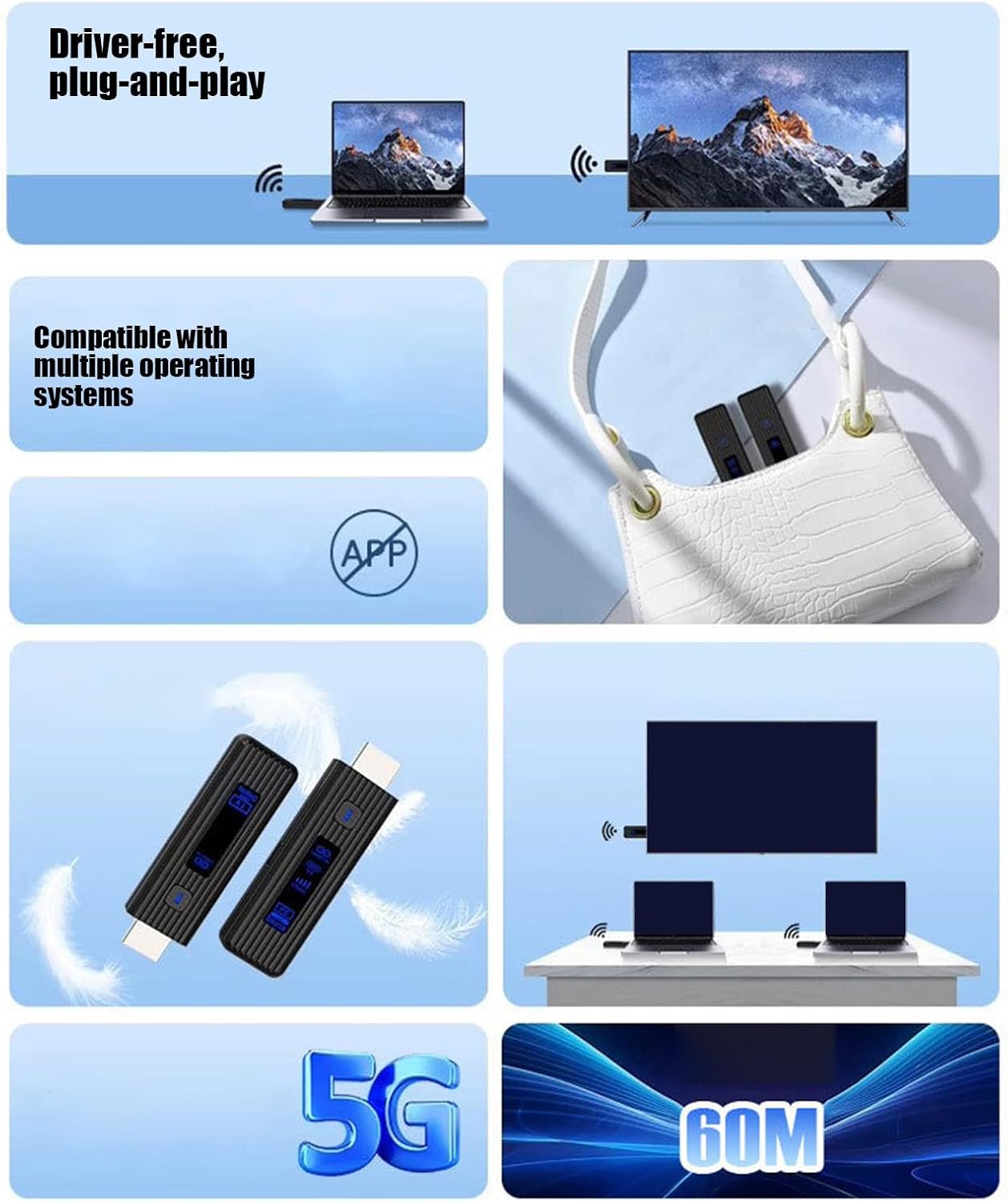Stable Signal Transmission System: Engineered with advanced signal processing to ensure low-latency, high-stability video and audio transmission, supporting uninterrupted display for home entertainment, meetings, or presentations