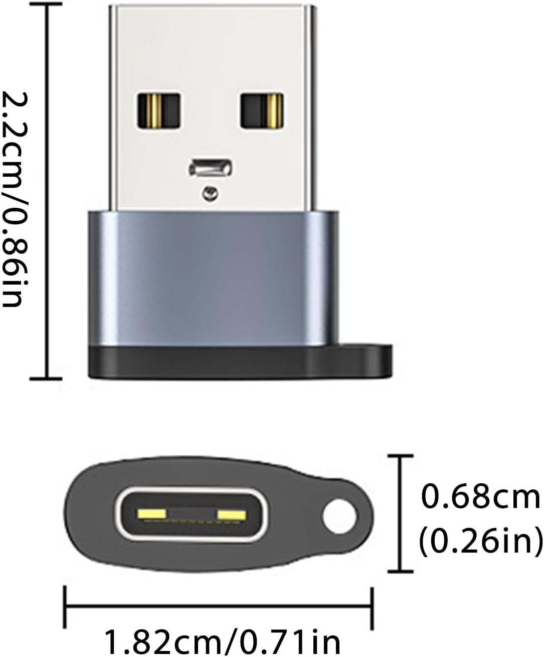 Built with aluminum alloy, this compact and portable USB adapter delivers fast charging capabilities. It acts as a female to male charging converter, fitting audio accessories, video connectors, cameras, tablets, phones, laptops, and other devices.