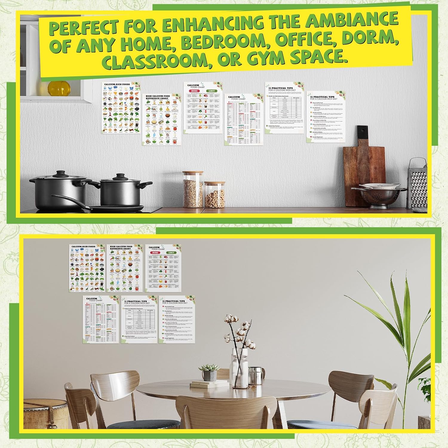 Comprehensive Coverage of High Calcium Dietary Needs: this set of high calcium food list posters includes 6 high calcium food list posters measuring 8.5×11 inches each; Each poster features a well designed layout, encompassing 11 practical tips and over 70 naturally calcium rich foods; From traditional dairy products and healthy leafy greens to nutrient packed seeds, legumes, and fish, it offers a comprehensive range of high calcium dietary options to enhance the quality of your daily meals