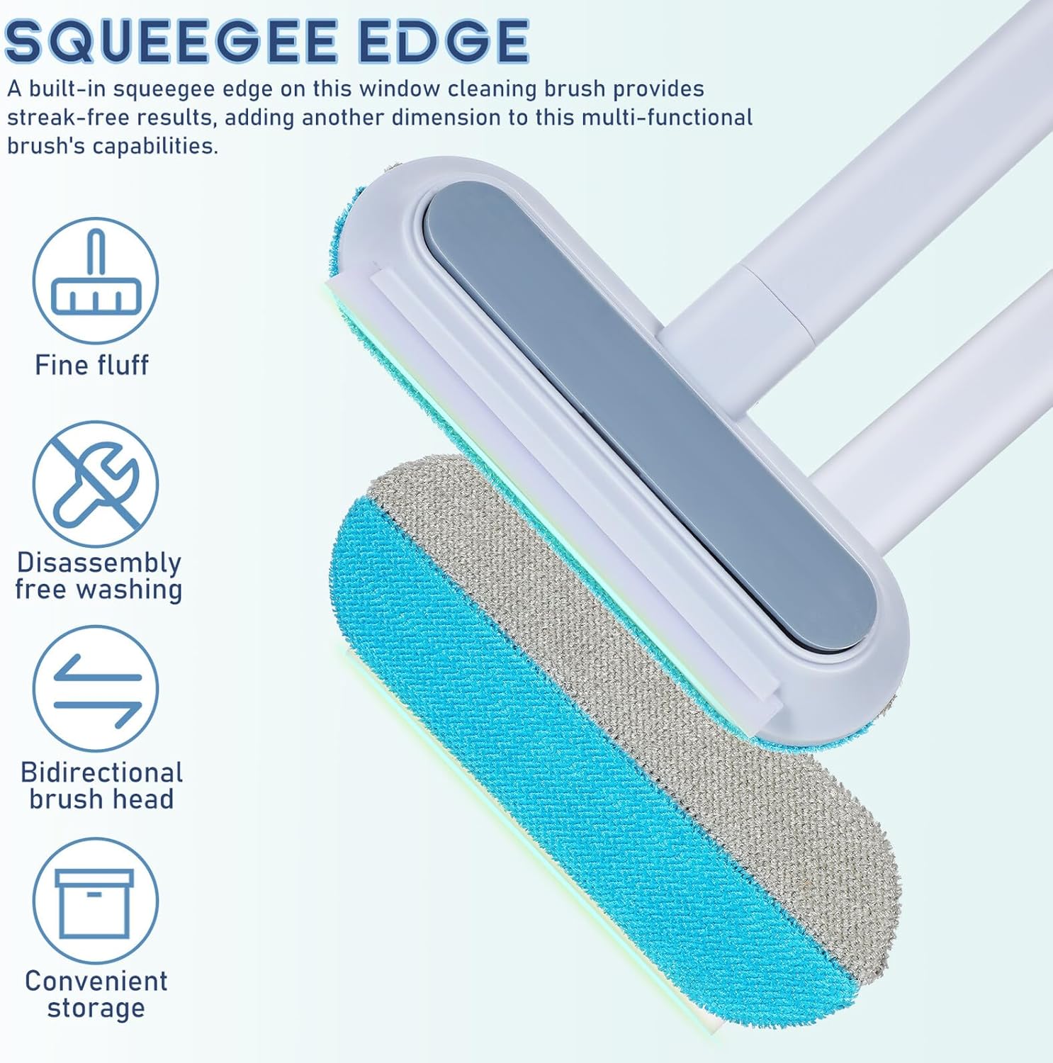 -Hidden detail brush: An ingeniously concealed, smaller brush in the window cleaner brush handle tackles tight spaces and crevices, enhancing overall cleaning thoroughness window cleaner tool