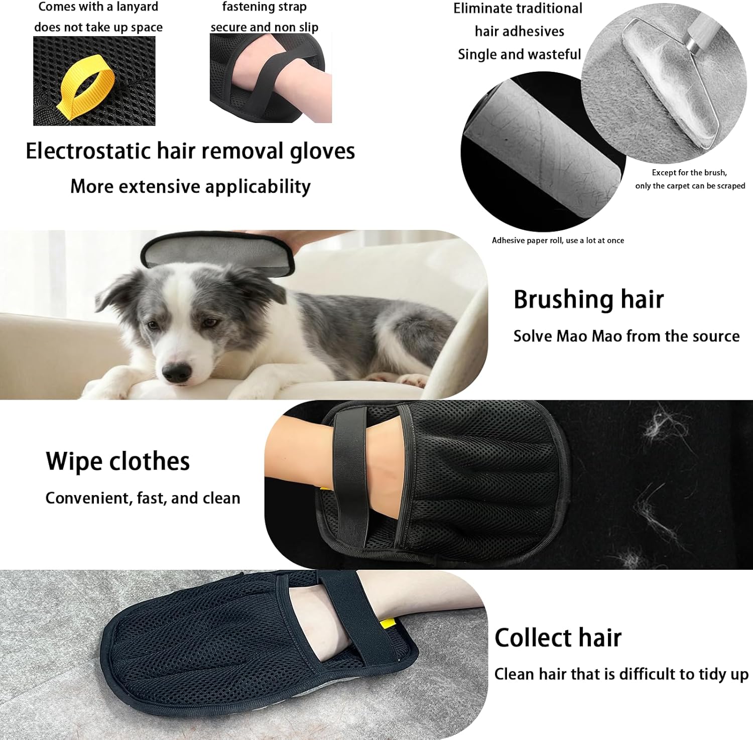【Easy to use】This electrostatic pet hair remover glove is worn like a regular glove, ensuring complete coverage of the fingers for easy control of strength and direction. Sliding and rubbing back and forth, hair and debris will naturally accumulate on the pet hair remover glove.After use, simply gently remove the pet hair accumulated on the glove.You can rinse directly with clean water, or use mild detergent to assist in cleaning and easy maintenance.