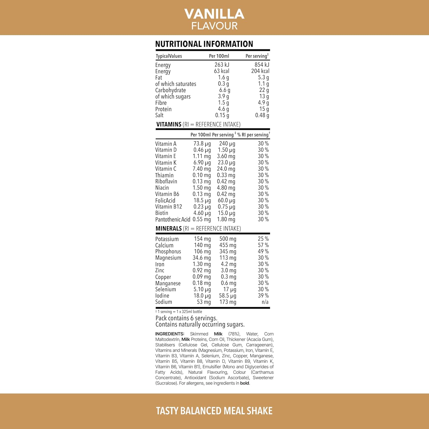 MULTIVITAMIN AND MINERAL POWERHOUSE: protein drinks with 23 vitamins and minerals (incl. Vitamin A, Vitamin D, Vitamin C, Vitamin B6, Vitamin B12, magnesium and zinc), and 4.9 g of fibre per ready-to-drink meal